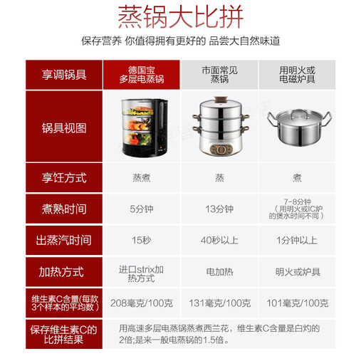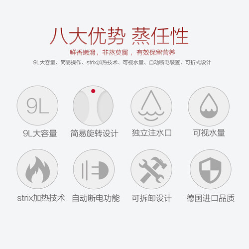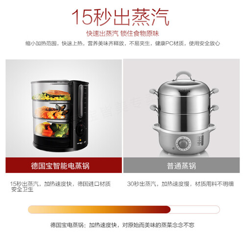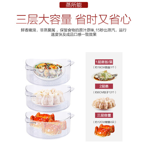 15秒快速蒸汽设计,让美味无需久等,更能留住其中的营养成分。外置水箱设计,水量剩余情况一目了然,提醒及时加水。