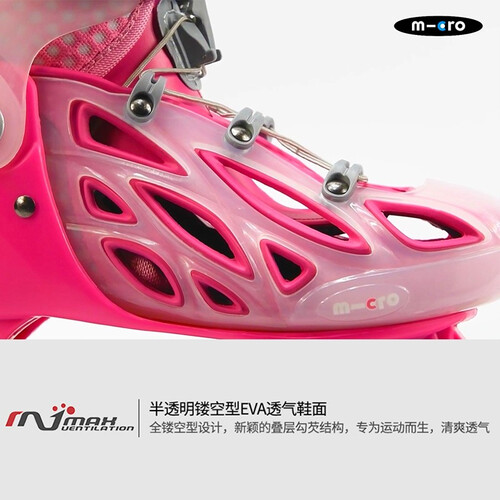 鞋头采用PP防撞材料打造,全面防撞固定脚型更好的掌握滑行。镂空鞋面设计,保障鞋内空气循环减少脚部出汗使双脚更舒适。