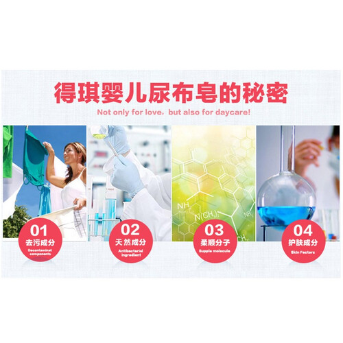 天然的植物萃取,蕴含的蛋白酶,能有效清除奶渍和异味,让衣物洁净柔亮;添加的钙皂分散成分,让泡沫更丰富,洗涤更有效。