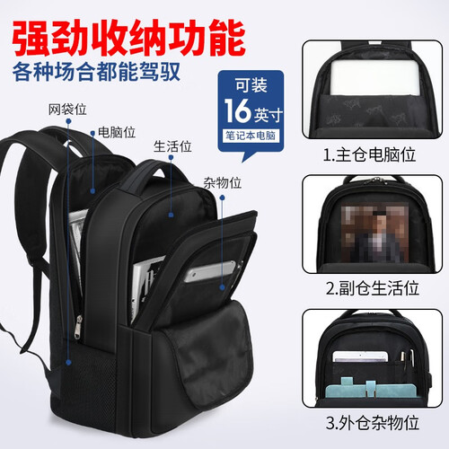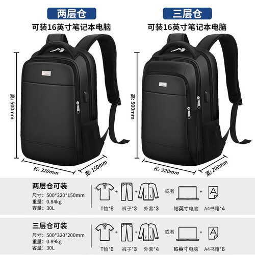 包内内置数据线,可以直接与移动电源连接,方便连接外部设备及时充电。三层的分区设计,即使是短途旅行的装备也能收入囊中。