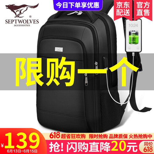 七匹狼三层分区双肩包