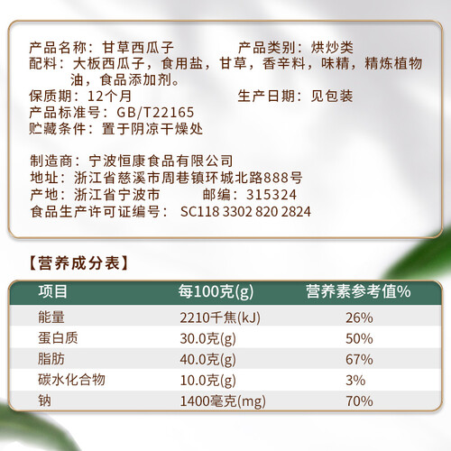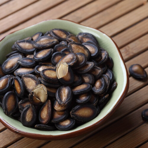 甘草味西瓜子,每一颗都用心烹制,粒大仁整。四周乌黑,中心呈黄白色,颜色清晰。