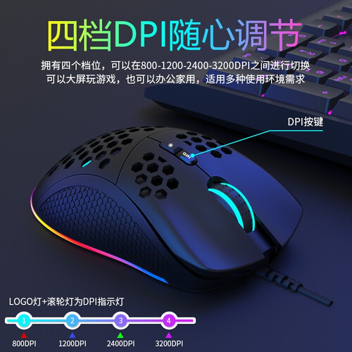 自带4色呼吸幻彩灯效,提升游戏激情,提高游戏胜出几率。兼容性广泛,支持各种大型游戏使用,满足不同人群的使用需求。
