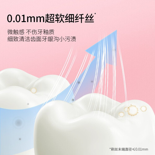 小小的刷头搭配0.01MM的刷毛,深入牙缝清洁,不给脏污可趁之机。高密度的植毛刷头,均匀分布有韧性,带来饱满的使用感。
