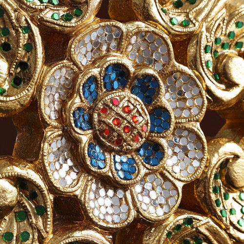 彩色玻璃,密度分布均匀,色泽光鲜剔透,经过手工雕刻精细,寓意财富滚滚。纯手工打磨造型,工艺精湛。