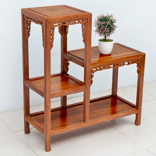 花架采用了古风手工雕花工艺,外观看起来非常的精致,可以展现出高雅的品位。主体部分使用实木打造而成,具有结实耐用的优点。