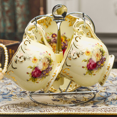 友来福欧式咖啡杯套装中具有圆润的杯身,并且储温能力更强。焊接牢靠的收纳架安全耐用,让居室空间显得更整洁。