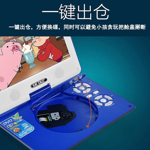 14英寸便携式高清播放器,户外携带更省力。支持市面上常见的影音碟片播放,满足更多使用需求。