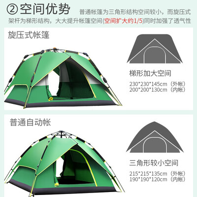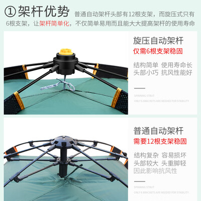采用旋压式技术自动,开启方便,提升用户更好的使用感。配备加固的架杆,空间更大,不易坍塌。