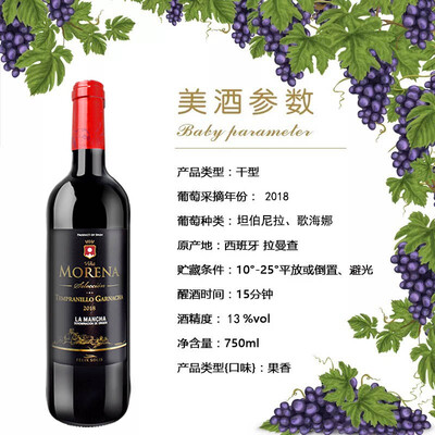 产自西班牙的葡萄酒产区,酒体香气纯净淡雅,入口圆润柔和,余味持久,层次丰富。防滑瓶底,方便酒体沉淀同时储藏更安稳。