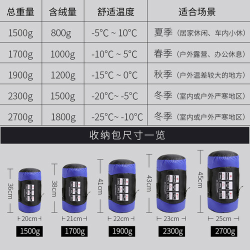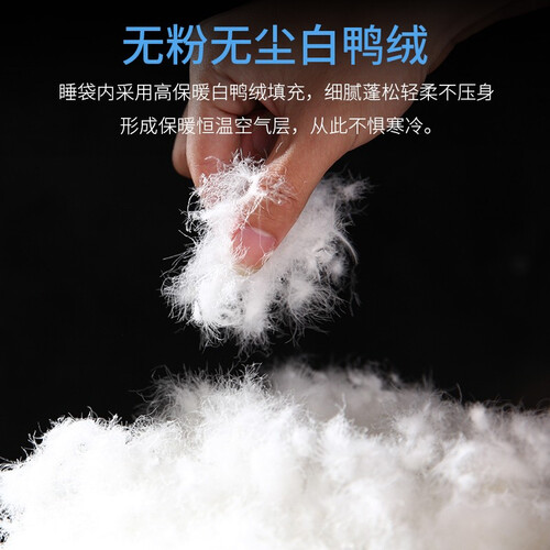 适合冬季使用的加厚保暖睡袋,填充优质白鸭绒,柔软蓬松清新无异味,配备魔术贴加固接口,让你自由翻滚睡袋不会滑落。