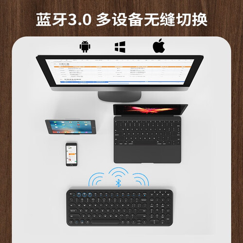 适合差旅出行携带的无线键盘,连接稳定,可适配多种系统,同时按键构造符合人体工学,可缓解手部压力,支持长时间使用。