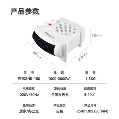 这款采用双面进风设计,可快速升温,温暖不久等。细密的金属栅格出风口设计,散热快而且耐高温,让使用更加安全。
