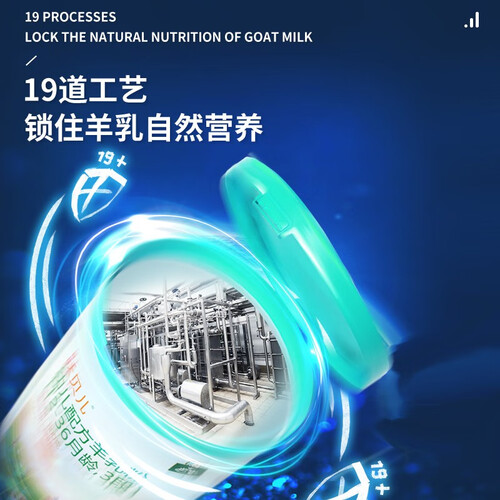 新鲜生羊奶入料,给宝宝新鲜滋养,19道工艺,锁住羊奶自然营养,多种营养素全面均衡,促进宝宝成长。