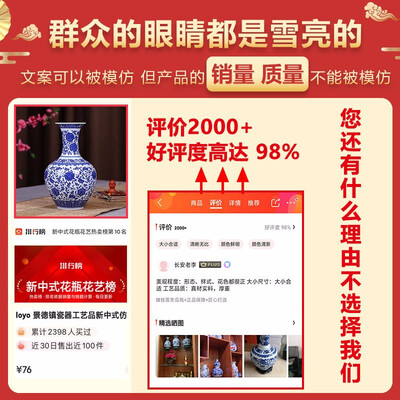 手绘花朵图案纹理印染其上,展现出新中式的风格,让客厅充满生机。加厚的瓶身,使其十分稳固,不易自行移动摔倒。