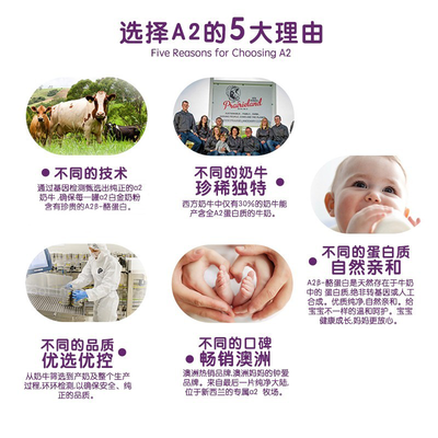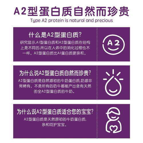 基因检测筛选A2奶牛,所产奶源只含丰富A2蛋白质,品质经权威认证,安全有保障,航班空运让新鲜直达,奶粉分子小易冲泡。