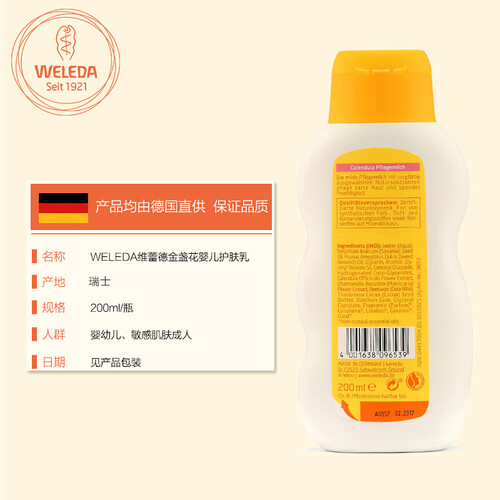 萃取金盏花精华,柔和舒缓,守护宝宝娇嫩肌肤。结合有机甜杏仁油,能够给宝宝的肌肤更加有效的滋润和呵护。