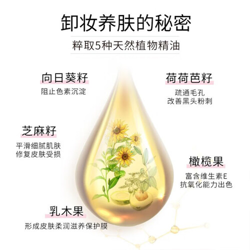 蕴含植物精华和天然保湿成分,能够轻松卸掉脸上的彩妆,温和不刺激,有效清除毛孔污垢和多余油脂,让肌肤清透不紧绷。