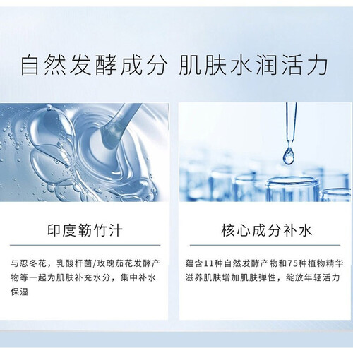 内部添加多种能量精粹,不但具有充沛的水能量,还能带来温和的修护效果,让肌肤享受长效滋养与锁水保湿。