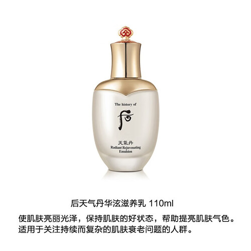 蕴含山参、鹿茸等成分,能够匀亮肤色,让肌肤更显透亮。同时还能起到提拉紧致的作用,缓解细纹干纹。
