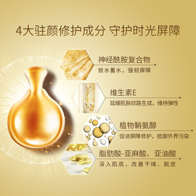 蕴含神经酰胺复合物,实现锁水与蓄水,有效强韧你的肌底。汇聚维生素E成分,使得你的肌肤更加弹润,摸起来顺滑。