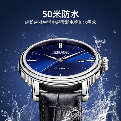 柔软的牛皮表带,纹理非常的细腻光滑。渐变太阳纹表盘,散发出迷人的光泽魅力。夜光的指针和时标,夜晚也能清晰读时。