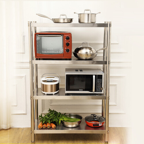 采用不锈钢拉丝层板,表面平整光滑,防水防锈,清洁非常的方便,层高可以上下调节,方便收纳不同高度的物品。