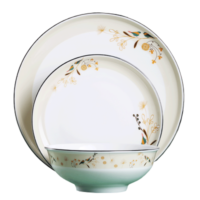 经过高温烧制的高石英瓷,采用银水描边和环保釉中彩工艺绘制,富有中式韵味的图案,打造美好生活。