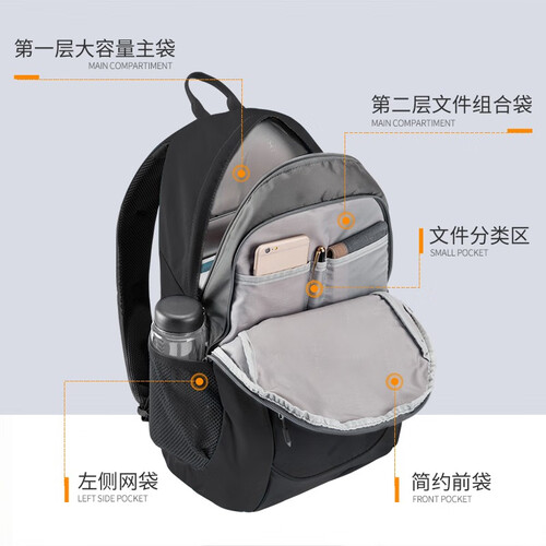 肩带采用仿生S型设计,搭配高弹背垫,背负时可以均衡分散压力,减轻肩膀负重感,久背不易疲累。