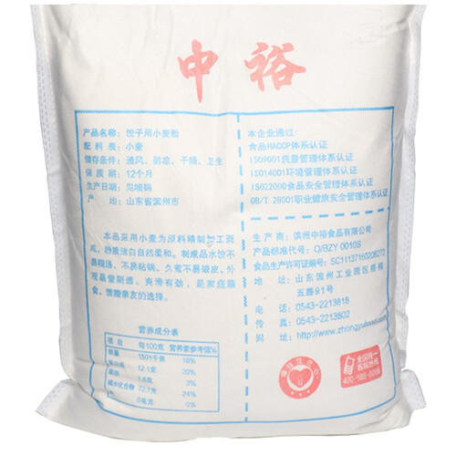 饺子专用小麦粉,优选来自黄河灌溉区的小麦,制作中不使用任何添加剂。 面粉制作,采用精确的比例进行搭配,营养又科学。