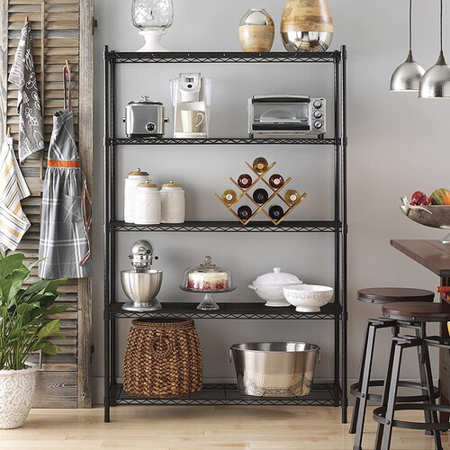 五层加长置物架设计,充分利用空间,收纳物品更齐整有序。采用厚实用料打造网片,三角稳定持重,不怕藏灰更结实耐用。