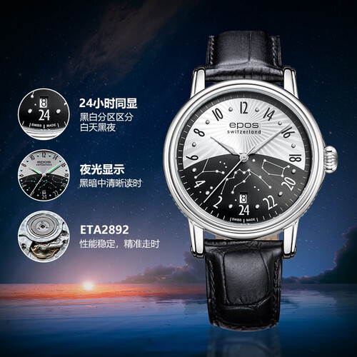 独特日夜表盘设计,24小时数字显示,便于掌握时间。精选优质皮革表带,柔韧坚实,耐用不易磨损。