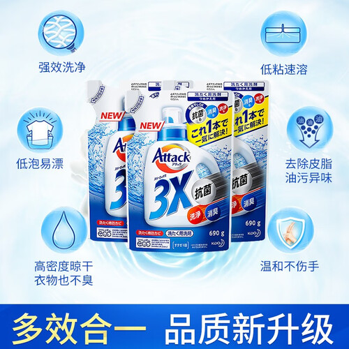 具有消臭特点,溶解衣物上的汗臭味,减少密集晾晒衣物发臭困扰。拥有低泡易漂特点,方便日常漂洗,节省水量。