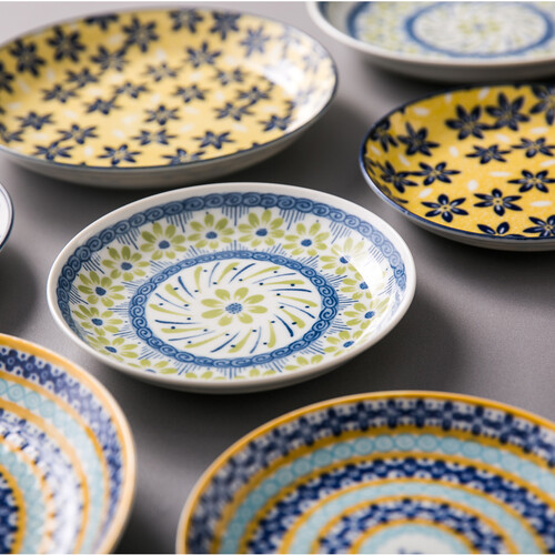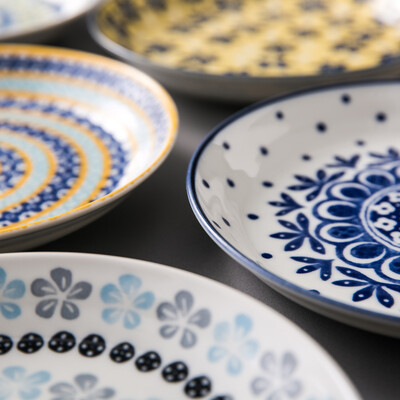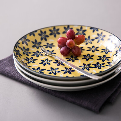 采用日式的风格设计,搭配灿黄的暖意与蓝花的清新,在餐盘间互相辉映,形成一种简约而清新风格,让吃饭变成一种享受。