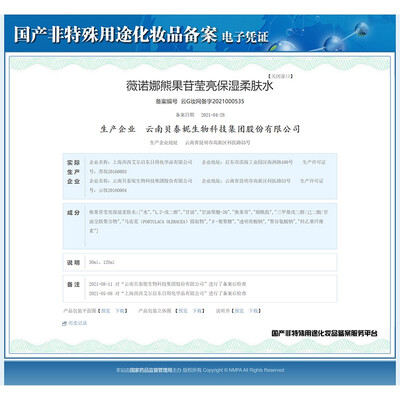 内含熊果苷成分,提亮肌肤光泽,让你轻松驾驭不同场合。拥有滇山茶成分,深层补水拒干燥,为你带来全新的护肤体验。