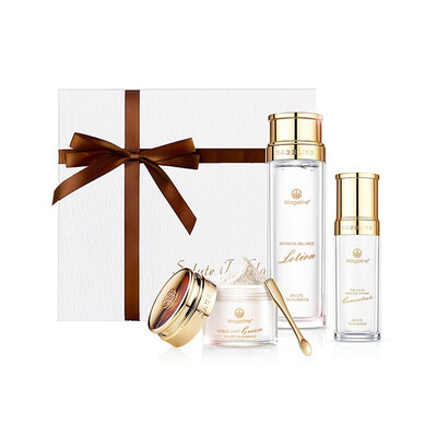 这款套装具有平衡水油收毛孔的功效,还能渗透肌底滋养润泽肌肤,并帮助改善肤色、淡化痘印,令肌肤紧致嫩润。