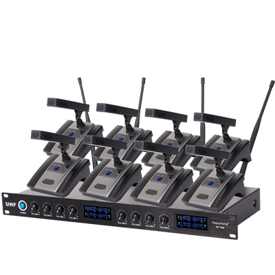 麦克风内置降噪系统,有效防止啸叫,确保声音清晰通透。高质量拾音音头,增大扩散范围,适用于大型会议室。