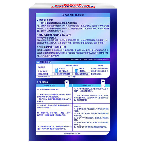 该款清洁剂采用了渗透活性配方,横扫洗衣机槽夹层内的污垢,使用更卫生。复合生物酶配方的选用,阻止污垢附着,让洗衣机更耐用。