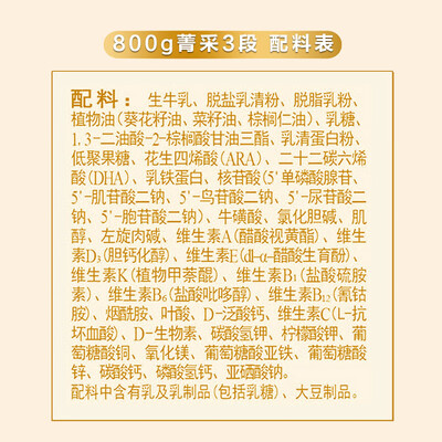 添加胆碱,提高身体保护力,宝宝身体特别棒。含DHA、ARA和胆碱,营养协同作用,保持宝宝智力健康发育。