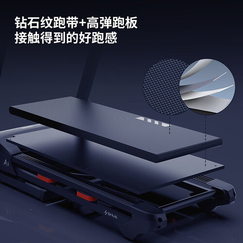 轻松折叠不费力,节省家居空间;采用羽翼折叠设计,方便收纳省空间。钻石纹跑带结合高弹跑板,带来舒适跑感,充分感受跑步乐趣。
