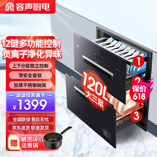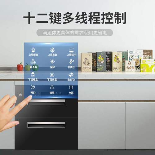三抽设计,大小餐具分类存放,空间利用率高。十二键操作控制,操作简单功能多样,满足多种消杀需求。负离子烘干,长效抑菌。