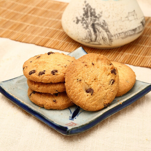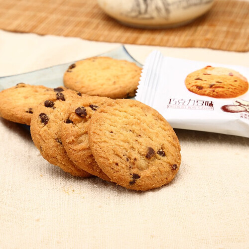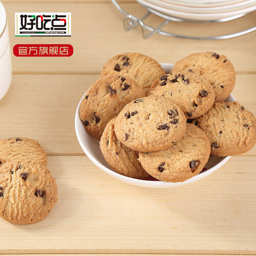在烘焙过程中,将香浓可口的巧克力豆融入到酥松的饼皮内,做出的饼干口感香脆,同时选择优良小麦磨粉制作,使得饼干酥香诱人。