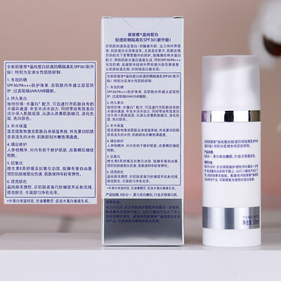 内含三种美白保湿因子,在防晒同时防止肌肤水分流失,同时更具有较好的美白效果,更好的提亮肤色。