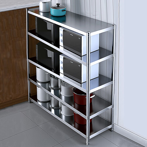 这款置物架的层高采用可上下5CM调节的设计,您可自行根据物品的体积进行调节,大小物品皆可放置。