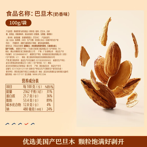 精选优质巴旦木,浓郁的奶香味,饱满的颗粒,入口酥脆可口,营养丰富。