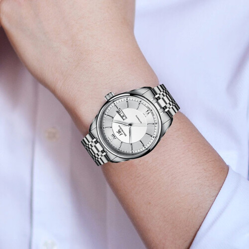 精钢材质打造的蝴蝶双按扣,表面光滑亲肤,佩戴舒适不刮手,方便摘脱。透底表背设计,机芯一览无余,带你探索时间律动的奥秘。