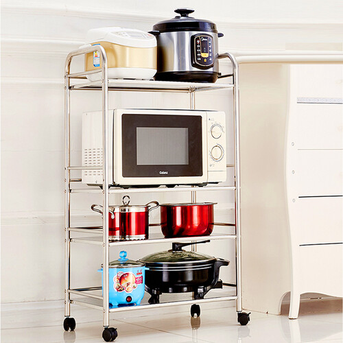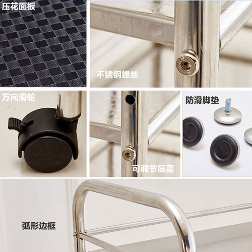 采用万向轮设计,移动便捷省力,厨房、客厅都能用。隔层间距可调整,各类大小物品都能轻松摆放,灵活且实用。