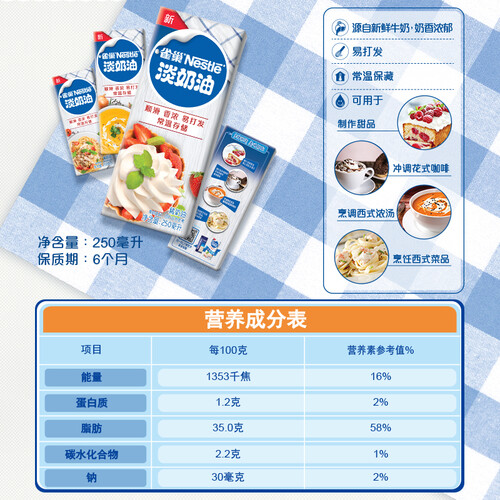 雀巢淡奶油鲜奶油