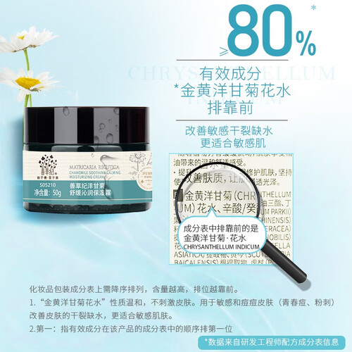 添加了洋甘菊的鲜花成分,很适合敏感肌使用,帮助修复泛红改善干燥。面霜采用大开口罐装设计,取用方便。