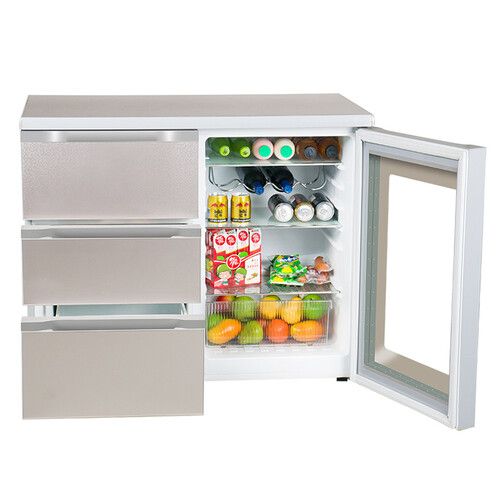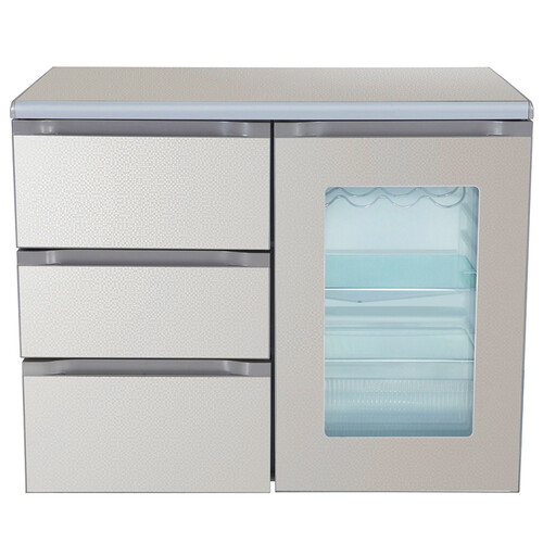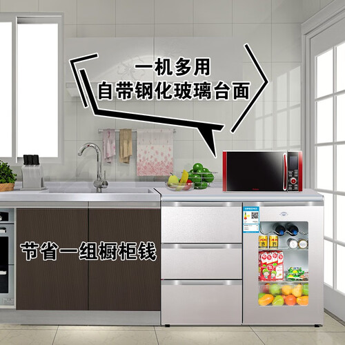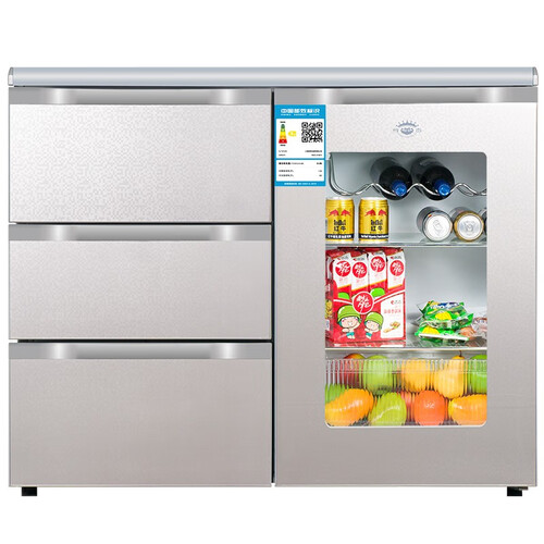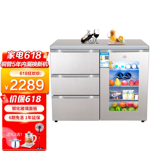 卧式设计,铜管冰箱,突破传统。80L冷冻室,130L冷藏室,块小容量不小。HIPS食品级内胆,健康保险持久耐用。